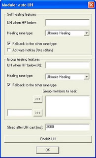 Healing rune type: Aqui você escolhe o tipo de runa para relar UH (Ultimate Healing) ou IH (Intense Healing)