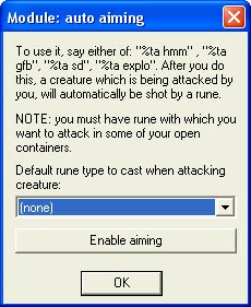 Escolha uma das 6 runas LMM, HMM, GFB, EXPLO, SoulFire e SD e clique em Enablre aiming e depois em OK