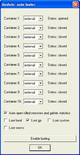 Não esqueça de selecionar a opção Auto open killed monsters and gather statistics para abrir o bicho quando morrer